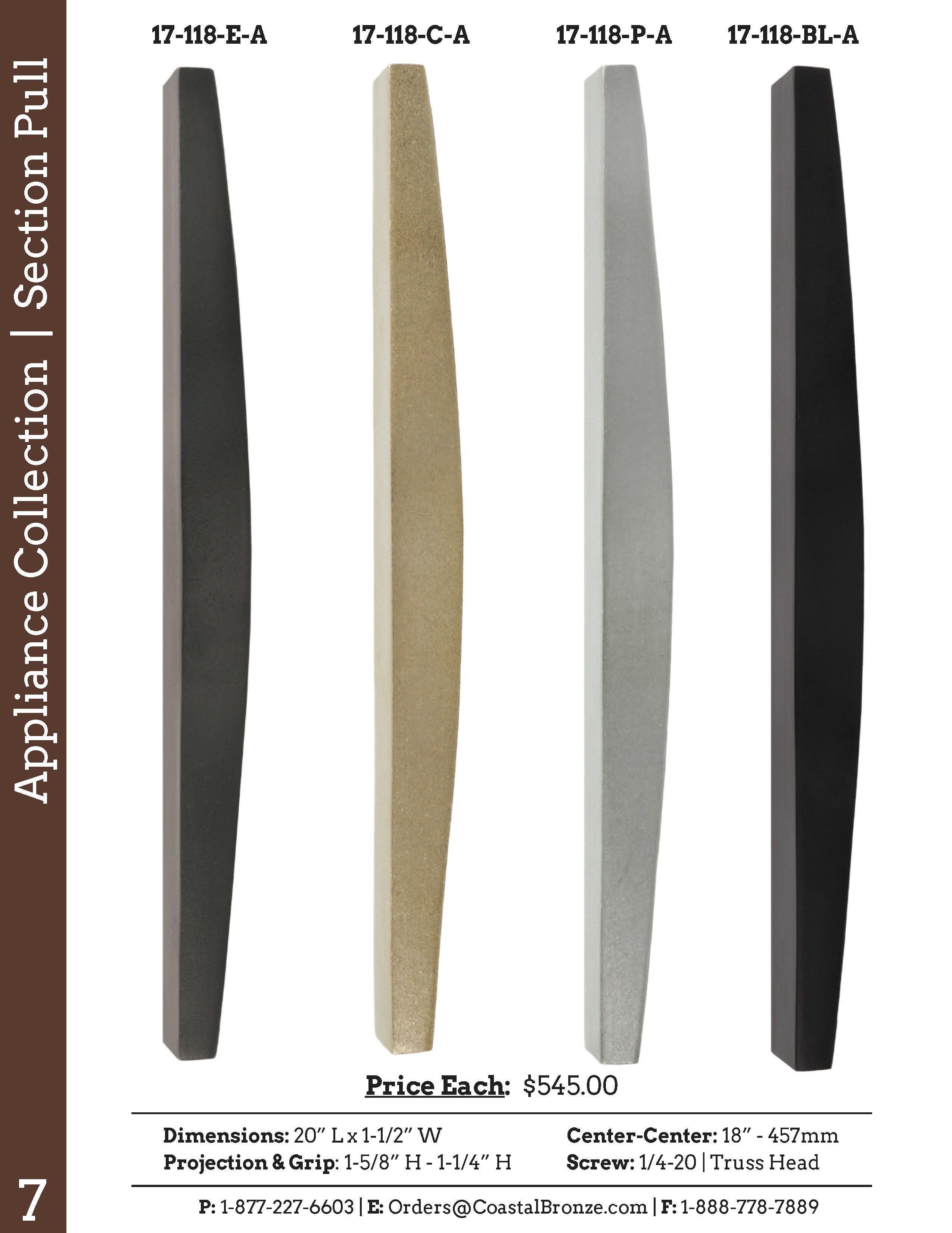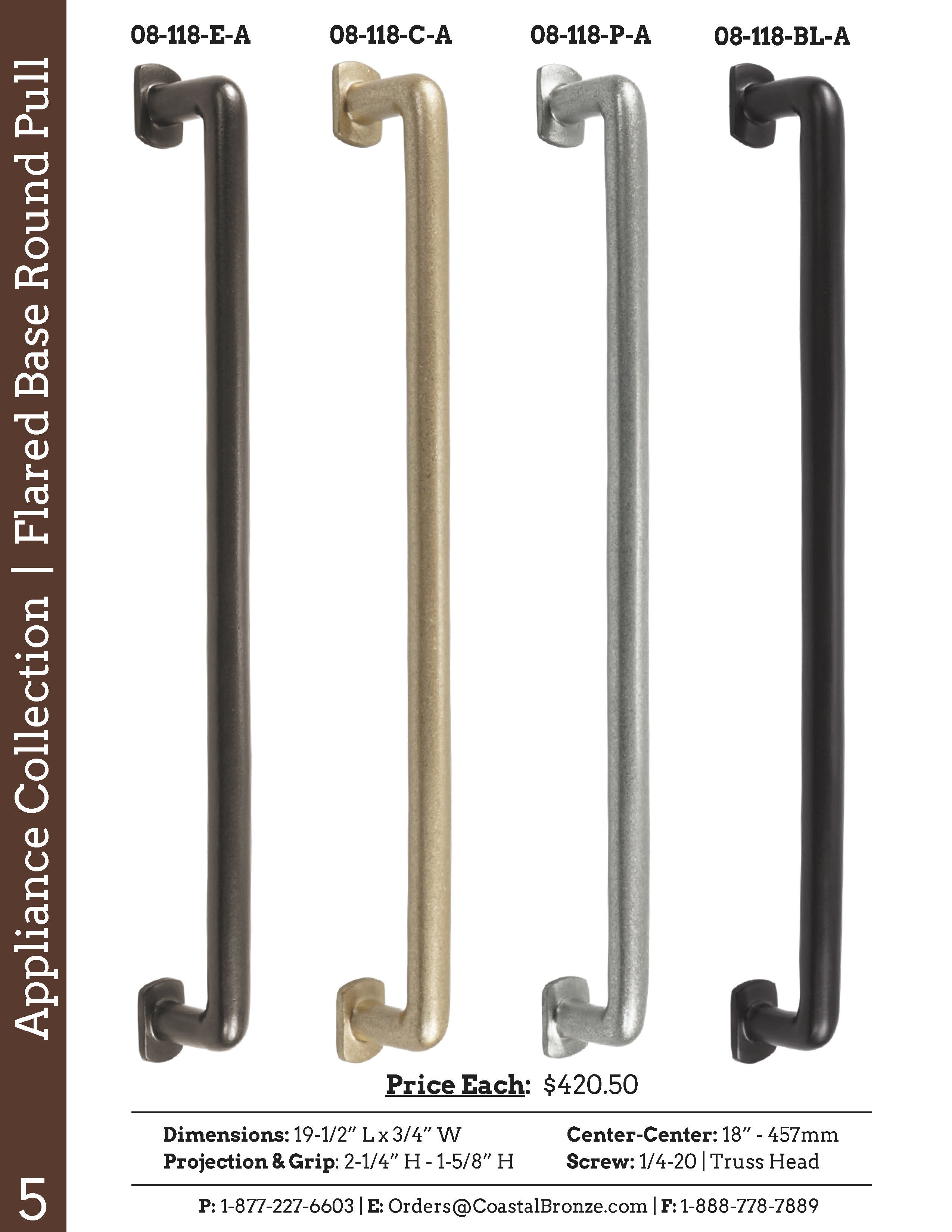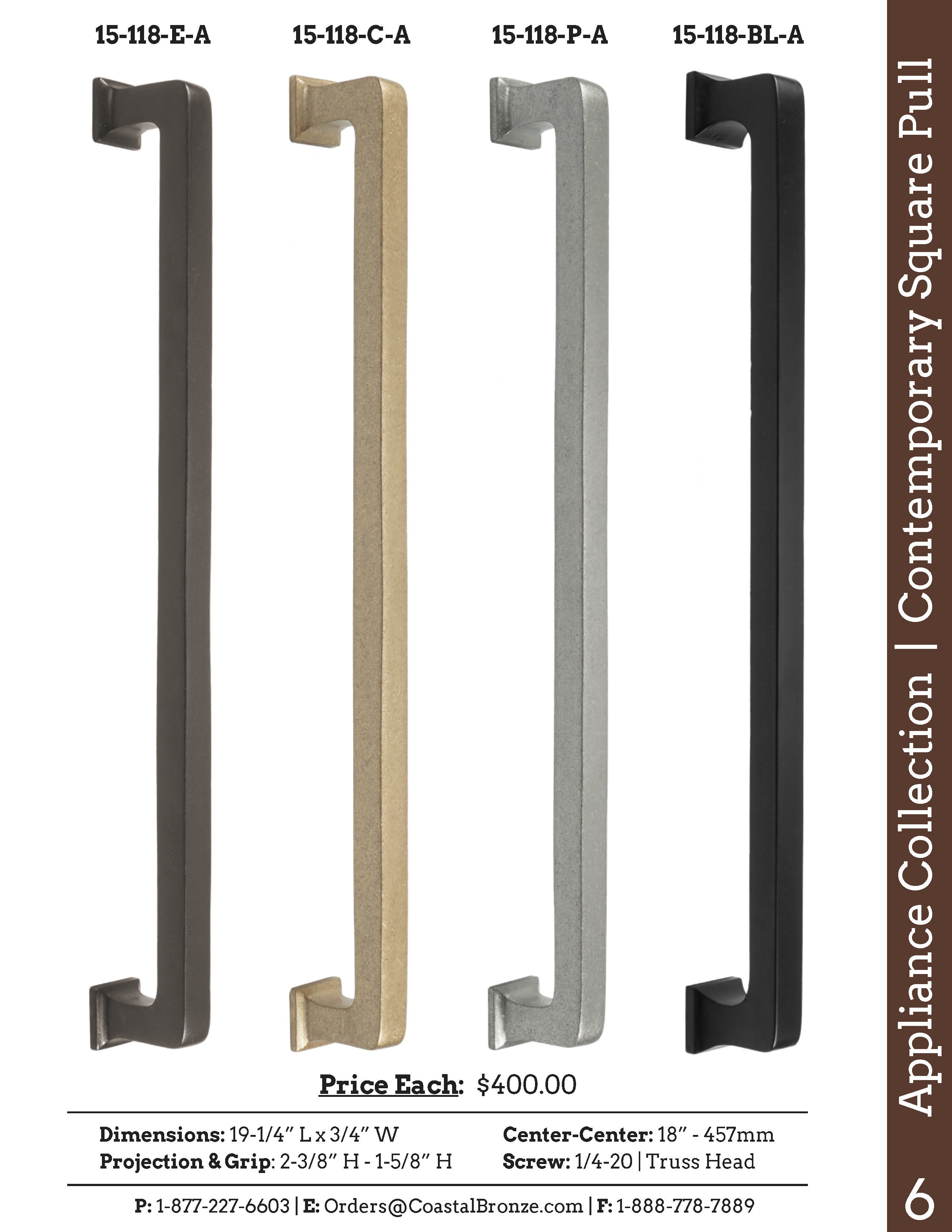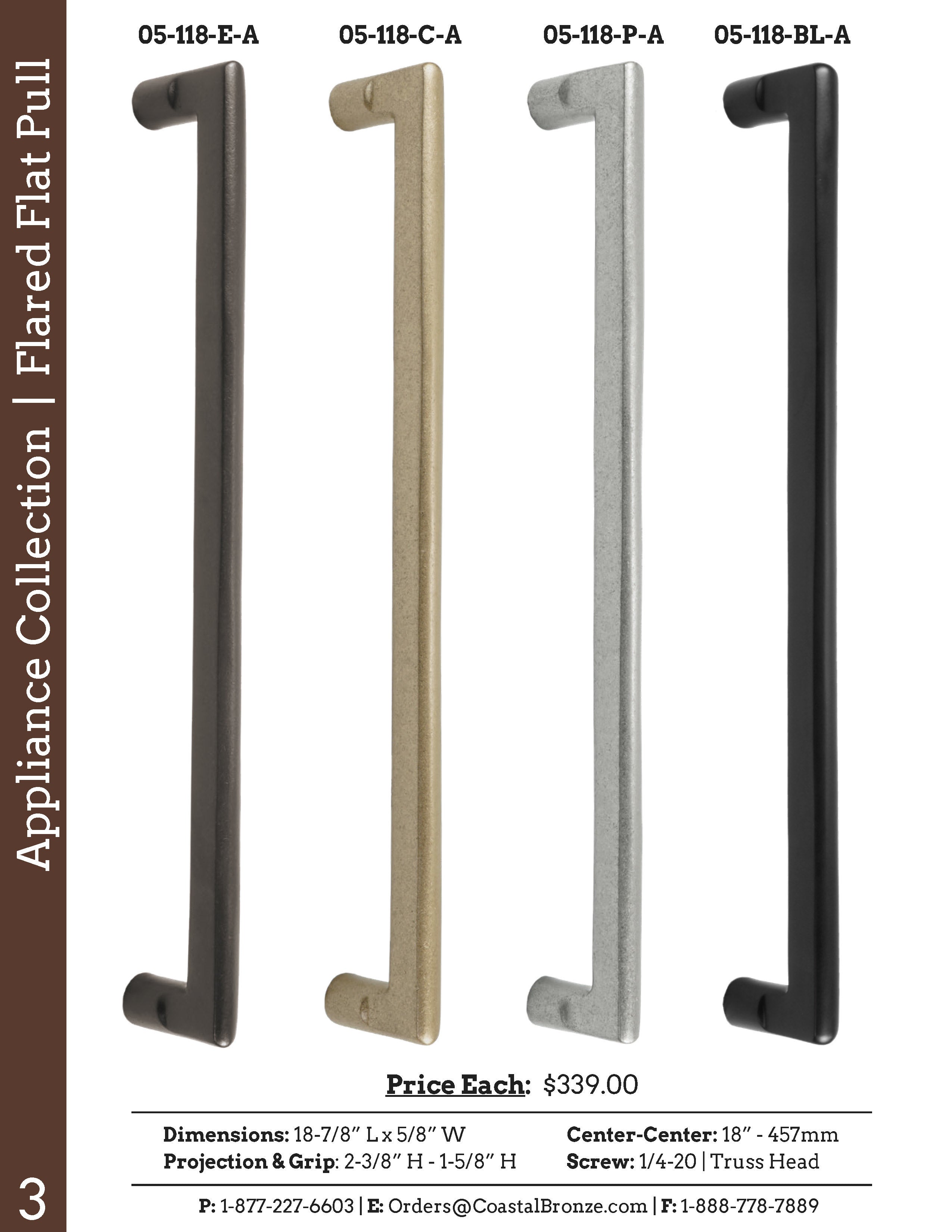 We are excited to launch our new line of solid Bronze Appliance Pulls.