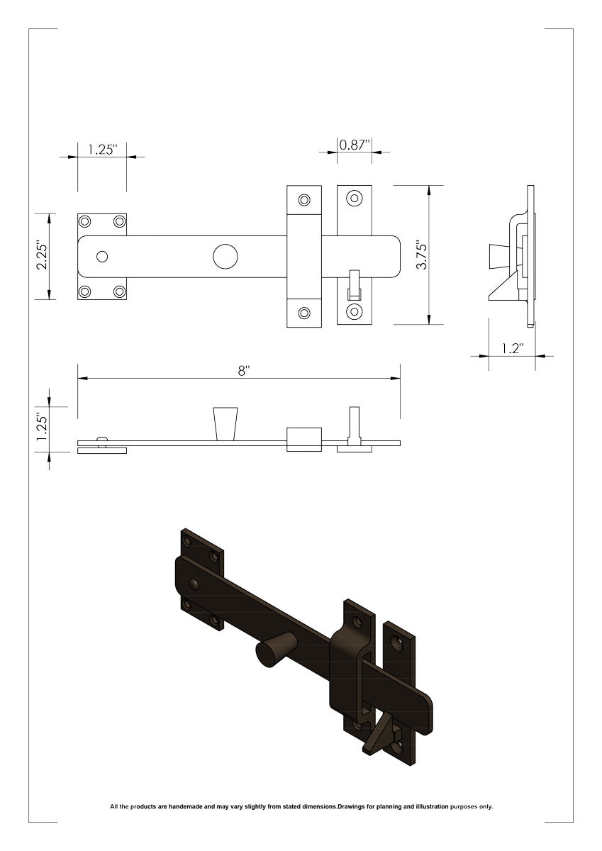 Catch Dimensions: 3-3/4” L x 3/4” W